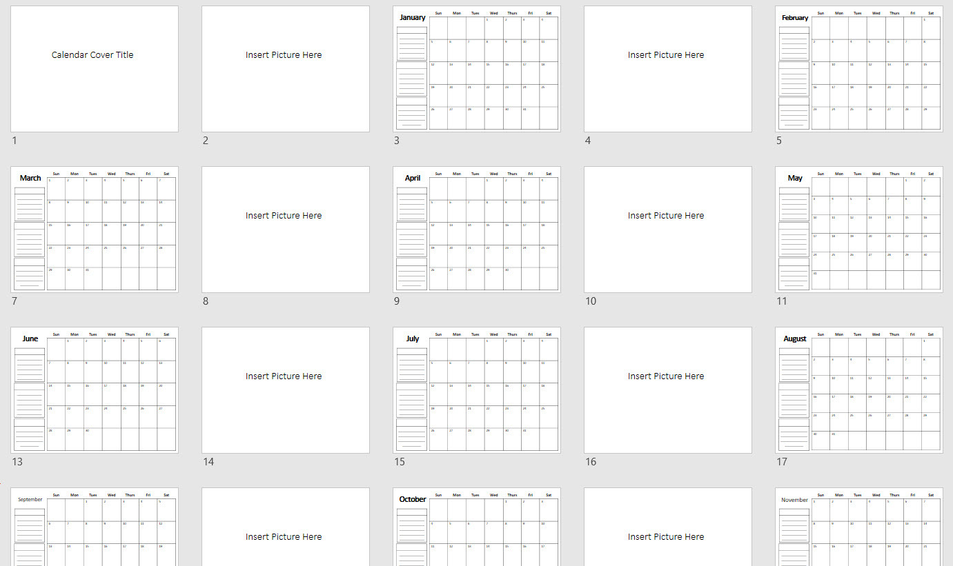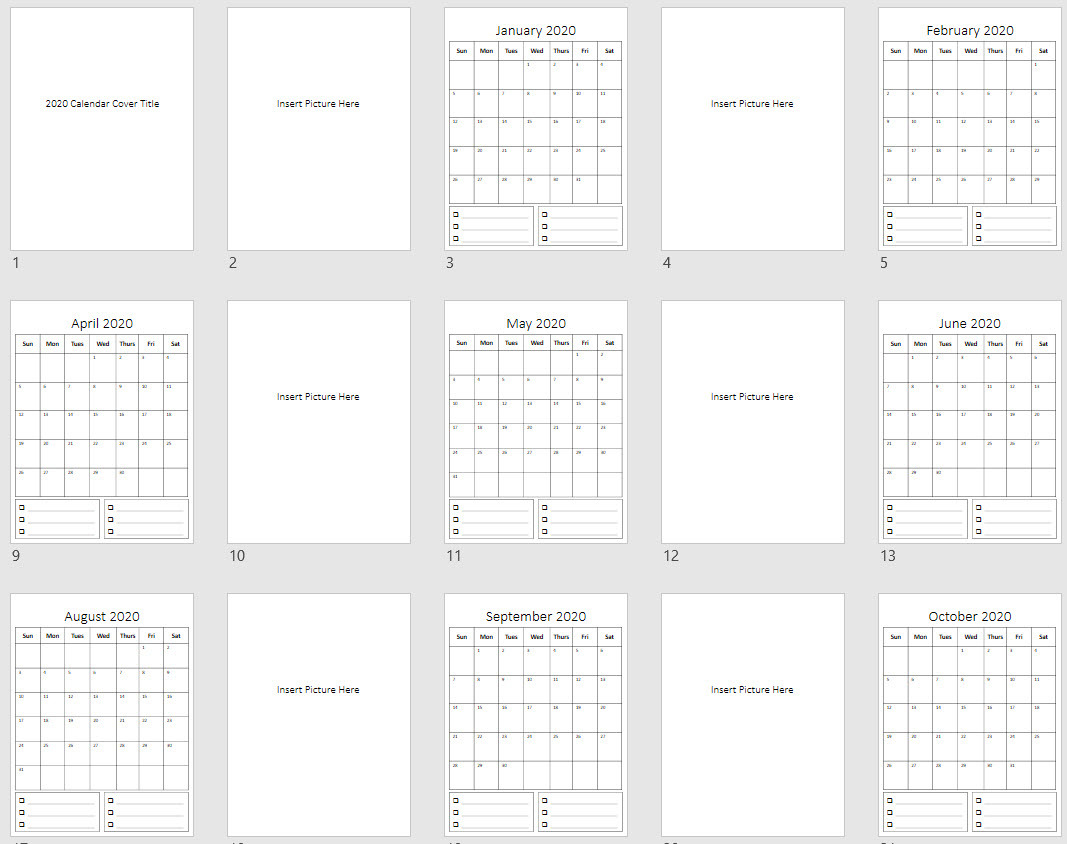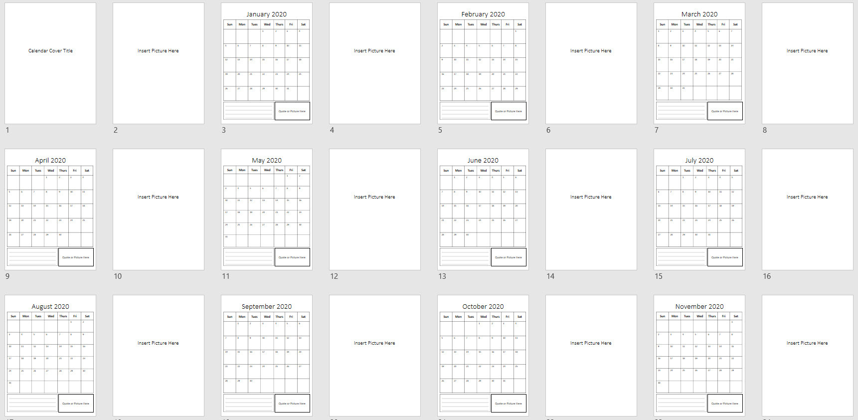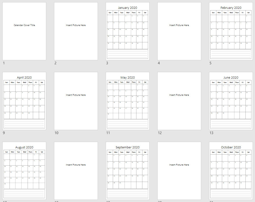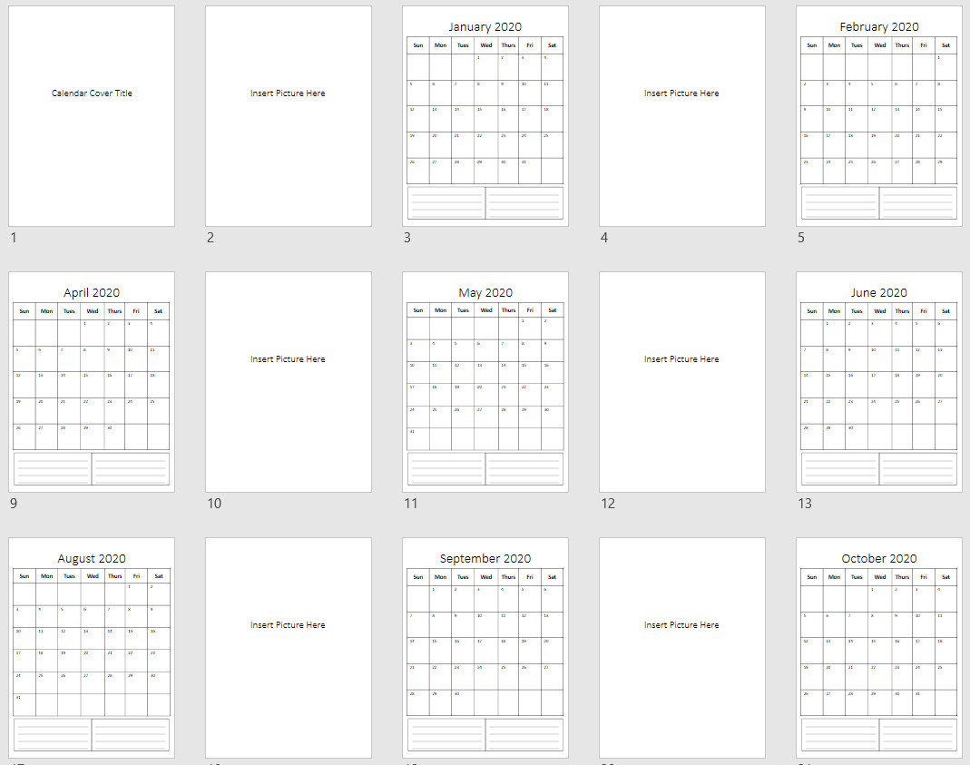 But then of course comes the design itself. Sure, the top part is almost always an image, but what if you want to get creative and have varying text boxes on the calendar for additional notes and writing?