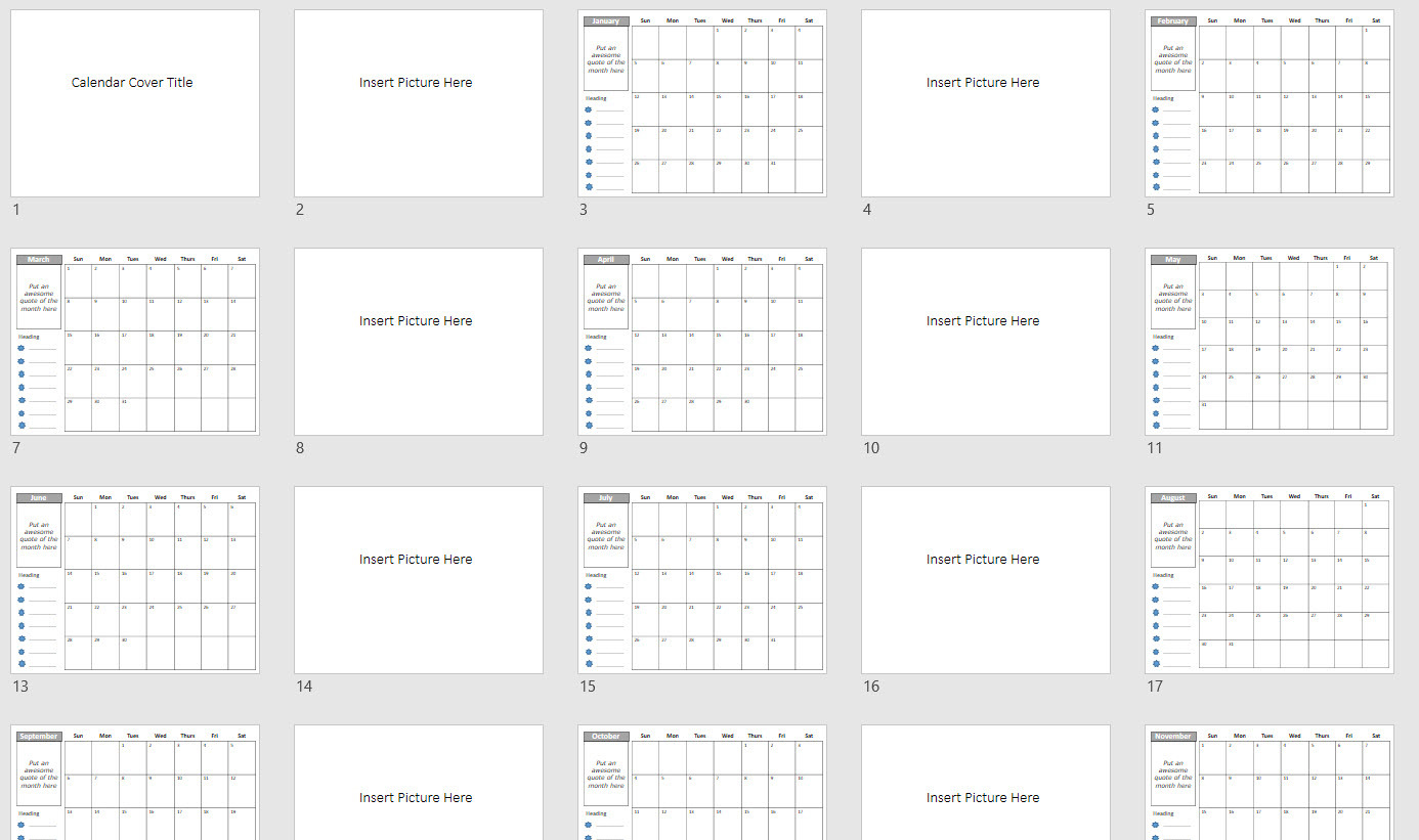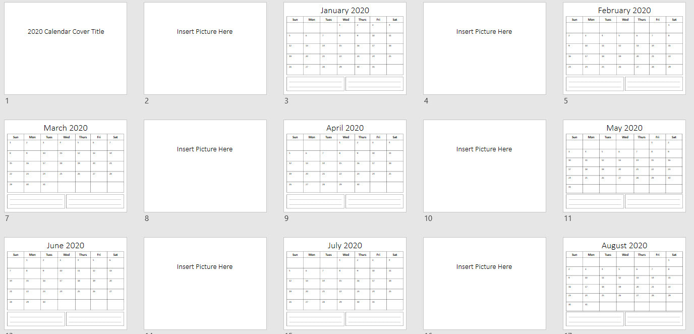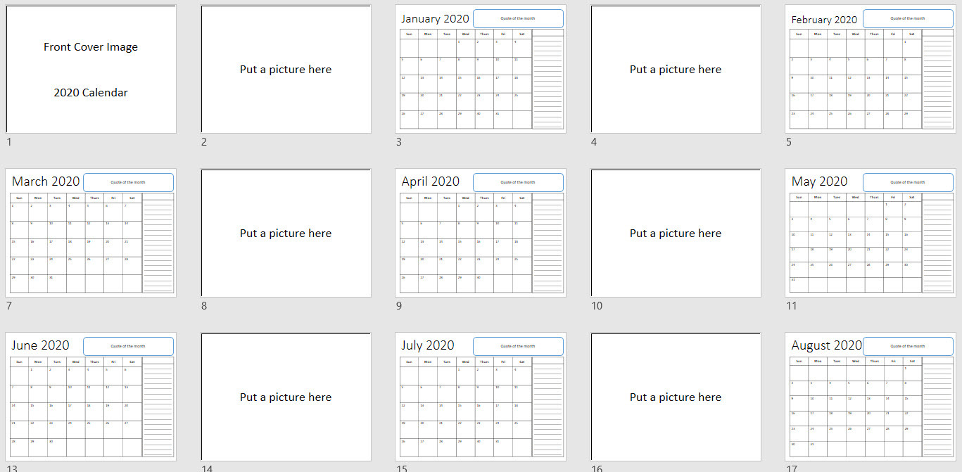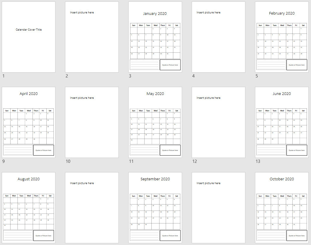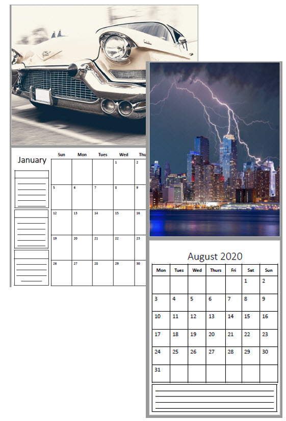 But then of course comes the design itself. Sure, the top part is almost always an image, but what if you want to get creative and have varying text boxes on the calendar for additional notes and writing?
